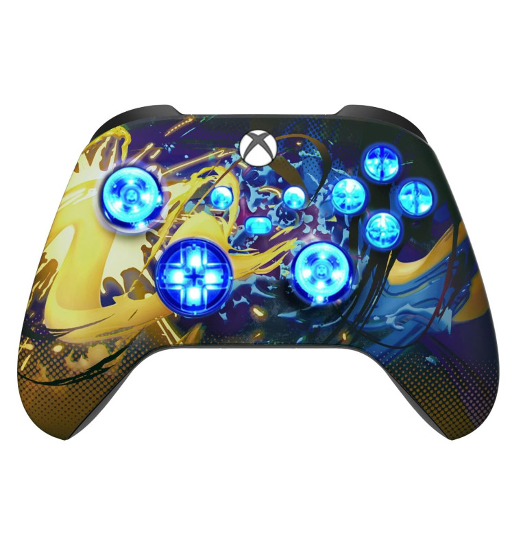 Brand New Original Controller, Custom Modded with our expertise!Ergonomic 3D diamond texture rubber back panels will make your controller stand out; Adds a comfortable feel and noticeable texture to your controller.Ergonomic grips provide better control and comfort; Upgrade your controller to suit you and stand out from the competition.The Pro Hair Trigger + Grips modded controller can greatly improve the function of the LT RT shoulder buttons for Xbox Series X / S controller.Adjustable dual trigger locks help you fire faster and save valuable time during fast FPS or shooter games.After setting the short trip, just press down 5mm, the function of LT RT can be triggered, save half the distance.Light up buttons and thumbsticks mod include 7 different colors, red, green, yellow, cyan, blue, pink, purple. And with slow blink and fast blink, there are 9 different modes.And you can turn it off at ANY time you like.Easy to operate, one page picture instructions included.Also comes with all original instruction manuals for the controller from Microsoft.